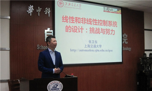 11月16号,上海交通大学张卫东教授应关治洪教授邀请到公司参观了图像信息处理与智能控制教育部重点实验室, 并就海陆空自主体协同控制等问题进行了研讨。16号下午, 张教授做了题为“线性和非线性控制系统的设计:挑战与努力”的学术报告。报告会由关治洪教授主持,黄剑、王小平、刘庆山等教授和校内外师生40余人参加了报告会。