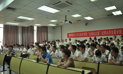 曹治国老师以“聪明的孩子要学自动化,选择自动化就选华中大”两句通俗而又不失风趣的观点介绍了公司和公司的成就和前景,并对营员们表示了欢迎。马杰老师介绍了公司研究生的前景和学习生活环境,并介绍了免试生接受政策和博士研究生奖助学政策。营员代表皮智雄同学和研究生代表沈芳同学分别发言后,全体教师和营员集体合影,为此次夏令营活动留下珍贵的记录。