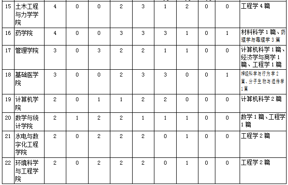 193篇论文分布在18个ESI学科领域。其中175篇来自9个优势学科;另有18篇分别属于环境科学/生态学、数学、分子生物与遗传学、经济学与商学、社会科学、精神病学/心理学、多学科、地球科学、农业科学等9个非优势学科领域。
