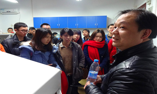 座谈会后,同学们分批参观了测量系教师的实验室,近距离地了解了学科研究的方向和具体内容。“能看到真实的实验仪器确实令人兴奋,我对科学研究的兴趣更加浓烈了!”测控1102班陈丹怡看到刘文中教授实验室的科研设备后感叹道。