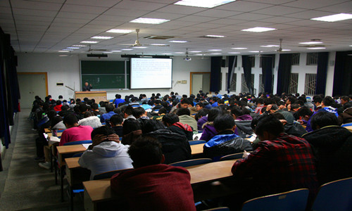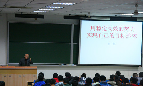 秦教授精神矍铄,已过花甲之年的他依然干练、爽朗。他首先以自己在任期间教书育人的经历和长期在企业社会的调查,并结合已毕业学子的正反例子,告诫听众:“大学并不等于命运”。他还阐释了未来如何面对社会的竞争和合作以及面对资源如何利用和保护,“做一个德才体兼备的人”是他对学子们的殷切期望。