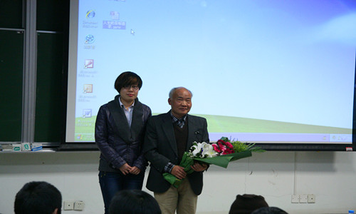 讲座后,新生代表王文晨向秦教授献花致敬,表达感谢之情。参加讲座的同学们纷纷反映听课后受益匪浅。“秦老师的讲座解决了很多我困惑的问题,我很受鼓舞,我也相信自己是能够努力成功的”2013级年级员工会副主席王茺如是说。