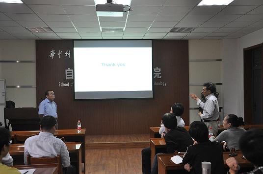 殷刚教授是Wayne州立大学随机优化和随机控制专家、Wayne州立大学学者联合会主席。在报告会中,殷刚教授首先举出了一个关于切换的例子,就切换一致性讲述了一系列的数学问题,并作出了深入地分析。随后详细的向大家讲述了如何运用随机逼近法解决问题以及将时间不同步函数转化为微积分的作用。会议最后,关治洪教授与殷刚教授就一些问题作了更深入的探讨,殷刚教授也表示会后会与公司师生进行深层次的探讨。
