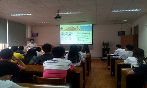 藤井先生首先用流利的中文详细介绍了神户大学的基本情况,包括公司建设,特色专业,职工等信息。他表示此行搭建了友谊之桥,并热情欢迎师生去神户大学开展访问、交流活动。