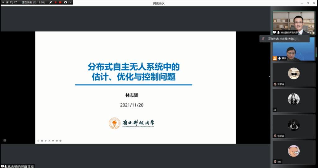 南方科技大学林志赟教授作了题为“分布式自主无人系统中的估计、优化与控制问题”的报告。报告指出自主无人系统正在向着集群化方向发展,具体表现为群体智能性、集群交互性和自主协同性。围绕无人化工业车辆应用领域,林教授展开对分布式自主无人系统与集群控制核心技术的介绍,探讨了自主感知与分布式定位、协同决策与分布式优化、协同执行与分布式控制等基础算法与技术应用。