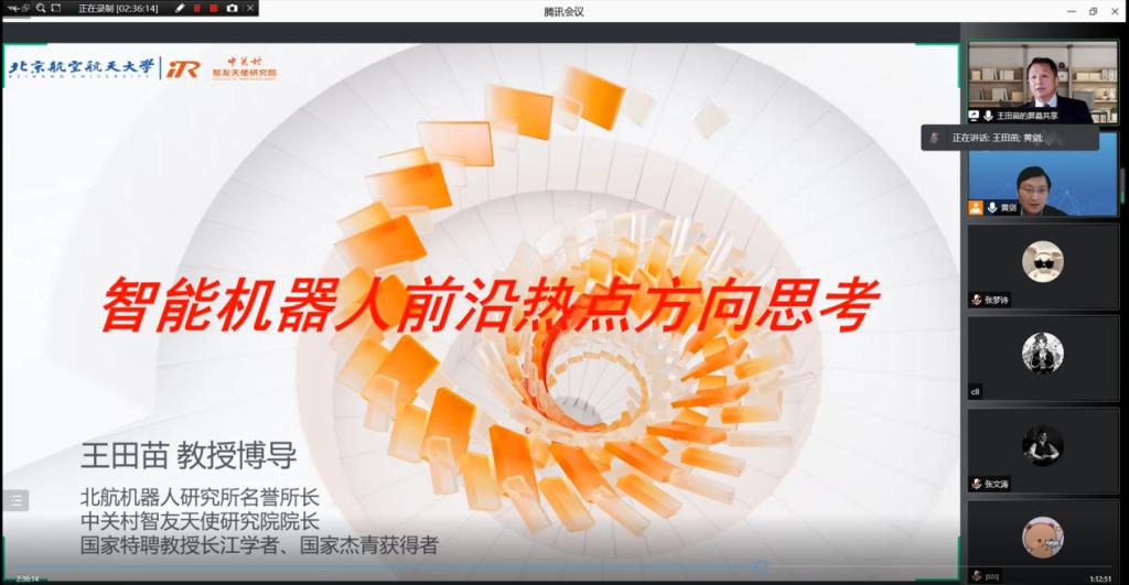 北京航空航天大学王田苗教授作了题为“智能机器人前沿热点方向思考”的报告。他结合其团队近年来的研究,就智能机器人发展值得关注的热点方向,工业机器人、专用服务机器人和个人服务机器人的宏观态势与应用牵引等两个主题展开了深入探讨。