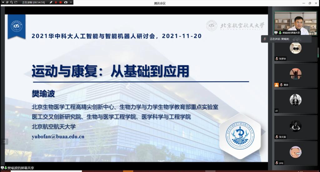 北京航空航天大学樊瑜波教授作了题为“运动与康复:从基础到应用”的报告。他首先指出当下高端医疗装备与器械面临巨大机遇和挑战,然后针对康复辅助器具面临的本质科学问题进行了深入探讨,并指出康复器械的核心技术亟待突破。最后详细介绍了他领导的北航团队在基于无创辅助血液循环的创新康复辅助技术从基础研究到转化应用的研究探索。