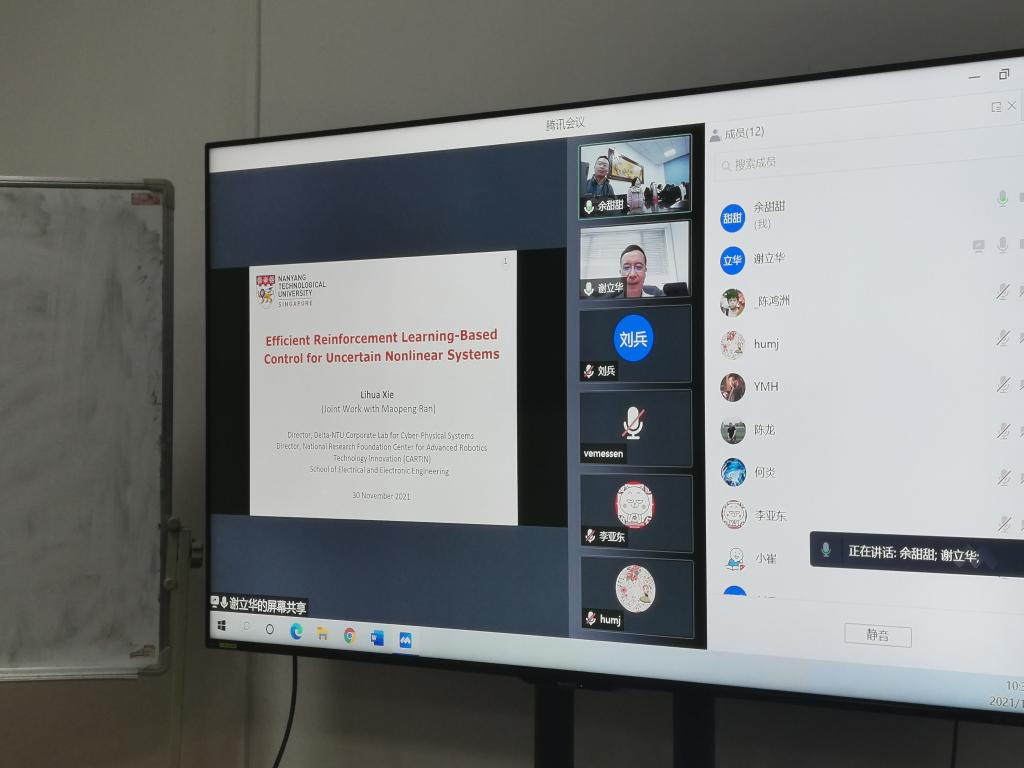 11月30日上午,新加坡工程院院士、南洋理工大学谢立华教授应邀为公司做学术报告,在TapTap官方网站南一楼中314,通过腾讯会议平台(会议号641102921)作了题为“Reinforcement Learning-Based Control of Uncertain Nonlinear Systems”的学术报告,报告由刘骁康老师主持,公司王燕舞教授、樊慧津教授、卢仁智老师等师生约20人以线下方式参加了报告会,线上也有十余人参加了讲座。