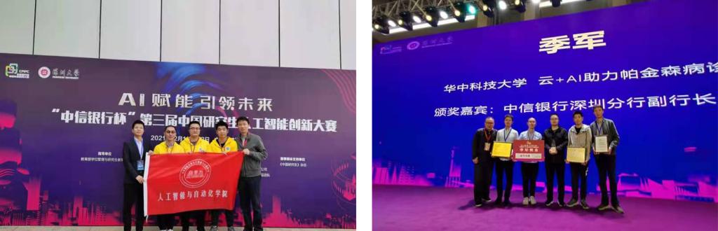 2021年12月13日,“中信银行杯”第三届中国研究生人工智能创新大赛决赛在深圳降下帷幕,公司硕士生张明阳、吴存霖、曾文正和同济医公司附属协和医院博士生曾玮琪在曹治国教授、肖阳副教授指导下联合组队参赛,从全国高校1505支参赛队伍中脱颖而出,获得总决赛季军、大赛一等奖,曹治国、肖阳获得大赛优秀指导教师奖,公司获得大赛优秀组织奖。