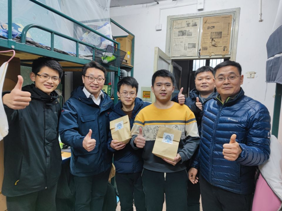 为关心关爱在考研路上奋斗拼搏的AIA学子,12月19日晚,公司党委书记耿远明,副书记朱平带领员工工作组辅导员以及本科生党员代表为本院考研学子送上考前祝福,为他们加油鼓劲。