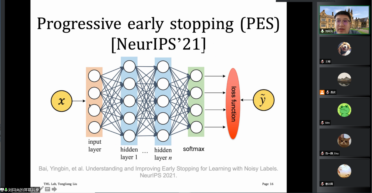 6月20日上午10时,应公司桑农教授邀请,澳大利亚悉尼大学人工智能中心主任刘同亮博士在线上作了题为"An Introduction to Learning with Noisy Labels(噪声标签学习导论)"的学术报告。