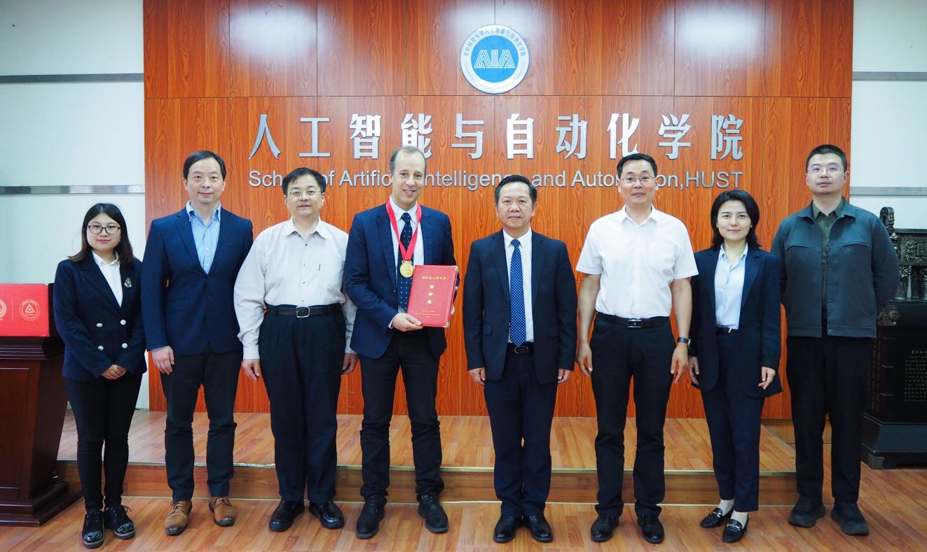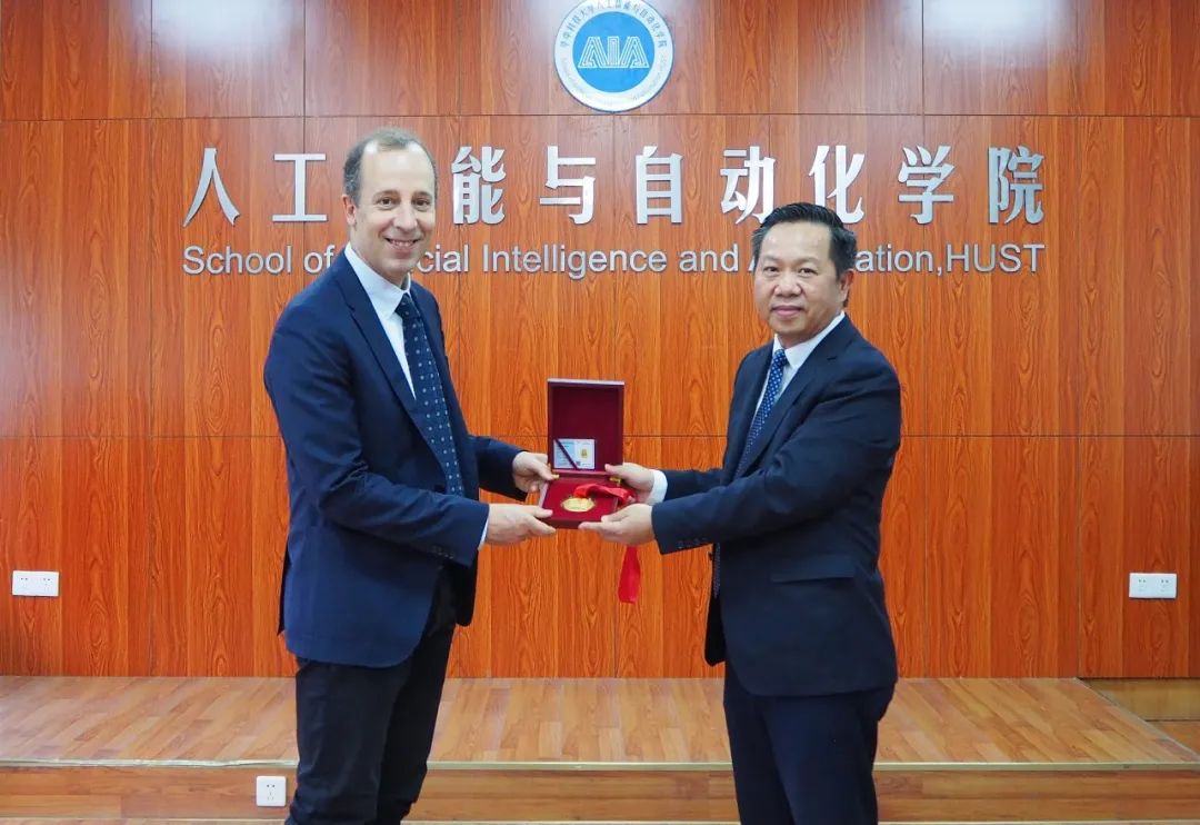 Jorge Goncalves教授于2020年荣获2017-2019年度湖北省政府"编钟奖",受疫情影响,外国专家无法来公司开展实地的科研和教学工作。疫情后,Jorge Goncalves教授再次到访公司,公司精心组织了颁奖仪式,由陈建国代表公司将"编钟奖"奖牌和证书颁发给Jorge Goncalves教授。
