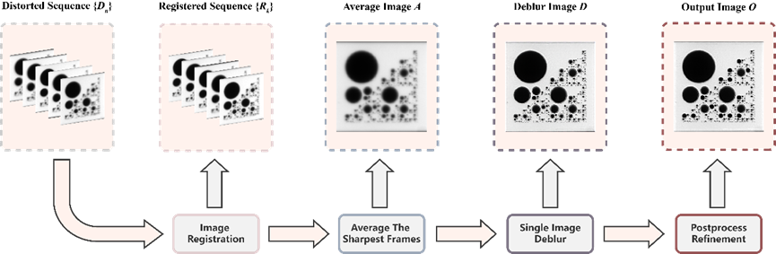 “大气湍流校正”赛道由普渡大学智能成像实验室发起,吸引了世界各地40支参赛队伍参加,比赛围绕“远距大气湍流扰动下目标识别”主题,设置两个子赛道:大气湍流下文字识别、大气湍流下编码靶标识别。VIELab-HUST参赛队伍提出了一种模型与数据联合驱动的大气湍流校正复原框架,先通过多帧配准自适应融合校正图像畸变,进而通过神经网络模型校正图像模糊,实现远距湍流图像畸变与模糊退化效应校正,在两个子赛道都取得冠军。