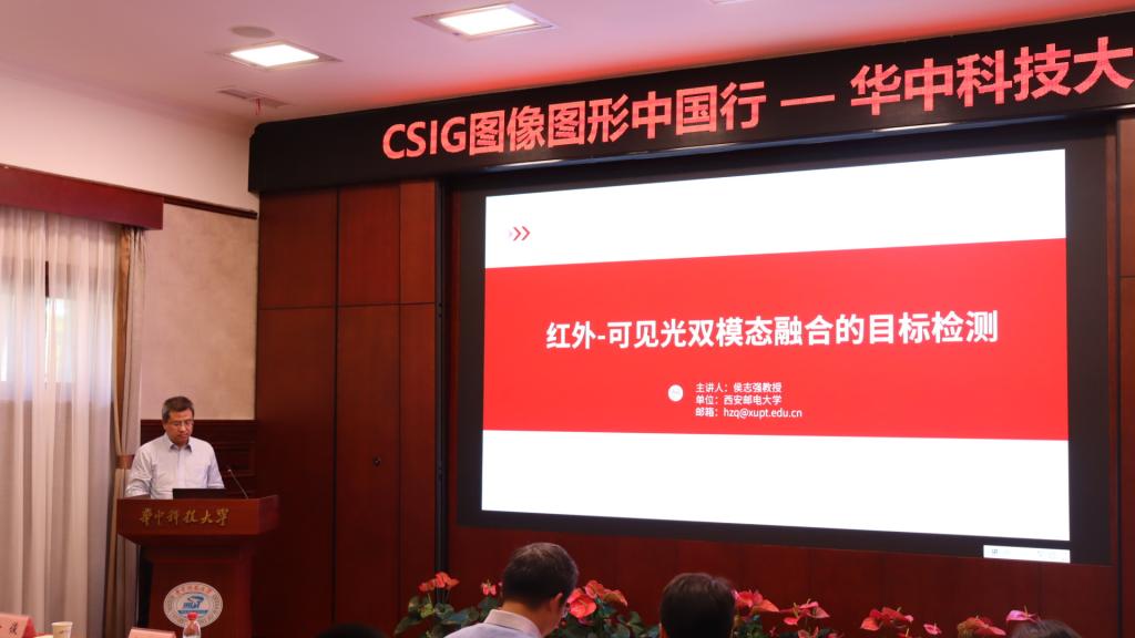 西安邮电大学侯志强教授报告了《基于红外-可见光双模态融合的目标检测》,报告围绕红外-可见光双模态融合目标检测,系统地回顾了该领域的关键方法,并介绍了近年来其在该领域所作的部分研究工作,包括采用先进的卷积神经网络架构,使用像素级融合、特征级融合以及决策级融合等多种融合策略,构建了双模态融合目标检测网络,同时还自主构建了一个双模态目标检测数据集。最后,探讨了红外-可见光双模态融合目标检测任务中面临的一些开放性问题和难题,同时也与参会同学进行了积极的交流和讨论。