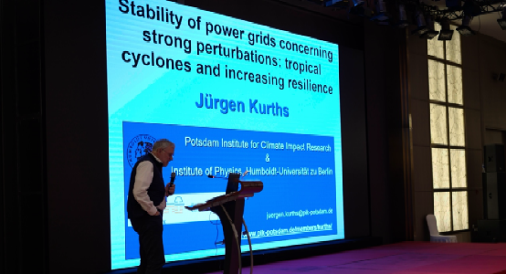 德国洪堡大学Jurgen Kurth教授作了题为"Stability of Power Grids Concerning StrongPerturbations-Tropical Cyclones and Increasing Resilience"的大会报告,讨论了覆盖强扰动的流域稳定性的概念,考虑到电网在极端荷载下的脆弱性,将极端事件的气候驱动因素模型和输电网络的可级联模型结合起来,提供了一个整体的协同进化模型,并以德克萨斯电网为例,解决输电线路的风致故障。