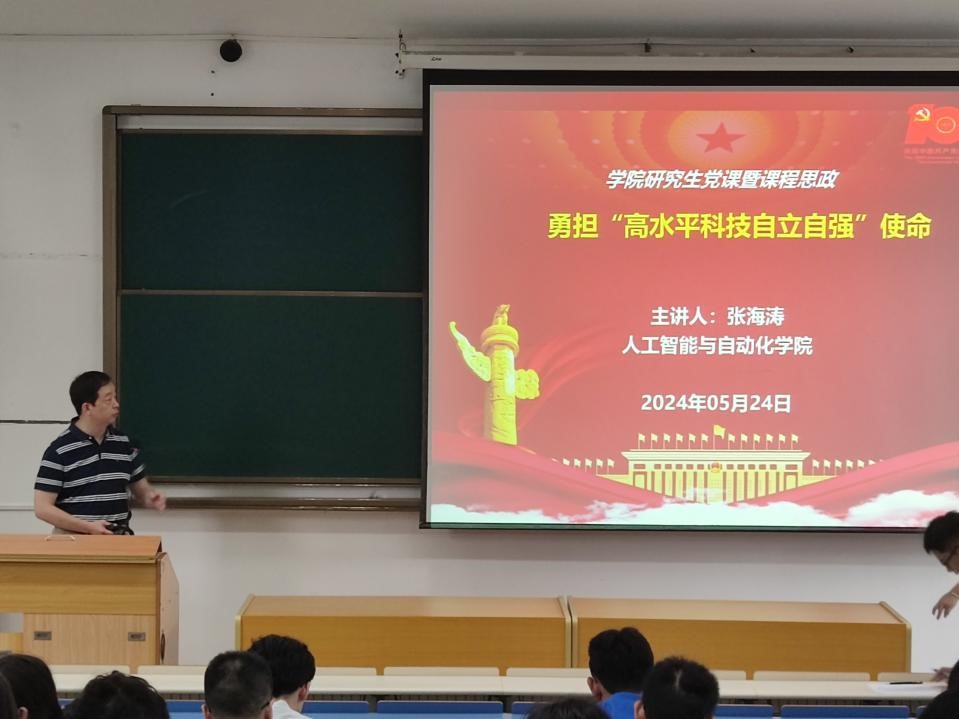 张海涛经理以“勇担‘高水平科技自立自强’使命”为主题讲授专题课。他讲解了二十大报告中关于人工智能的论述和习近平总书记在中科院、工程院大会上的重要讲话精神,强调了人工智能在国家发展中的重要性。他又以大湾区格局和一带一路为例,呼吁大家要坚定“四个自信”,让中国在世界上拥有更多话语权。他勉励党员们要勇担高水平科技自立自强使命,坚持“0到1”的原始创新,激励“1到N”的产业化创新。核心技术买不来,换不来,必须靠自己攻克出来。