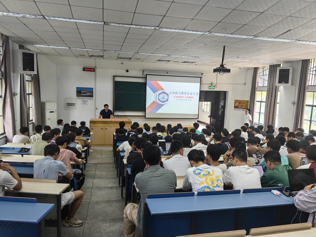 佘硕以“认知战与国家长治久安”为题讲授本次党课,他提出,当今国家安全的总体趋势复杂,国际环境复杂,间谍战、大翻译运动、1450、乌合麒麟、俄乌冲突、巴以冲突等种种现象造就了现今认知战的局势。首先,他引用哈佛大学奥利弗巴克斯和北约对认知战的定义,讲述了认知战的概念,重点表达了认知战对对国家安全的影响。接着重点介绍了美对华的认知战,即美国针对中国领土主权完整、国家安全、中国政治制度等核心利益在南海问题、涉港、涉台、涉疆、涉藏和军事安全的诸多领域开展了频繁的认知战攻势。