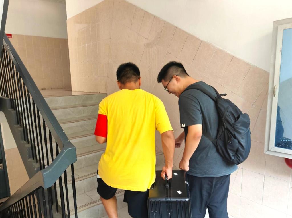 他们帮忙搬运行李、整理床铺、用耐心的解答和诙谐的聊天轻轻化去离家万里的不安。向他们道谢时,他们却拍拍刻有“志愿者”的袖章,笑道:“迎新,我们是认真的!”