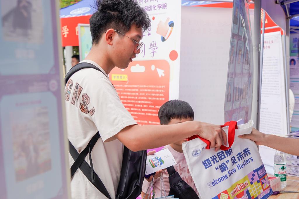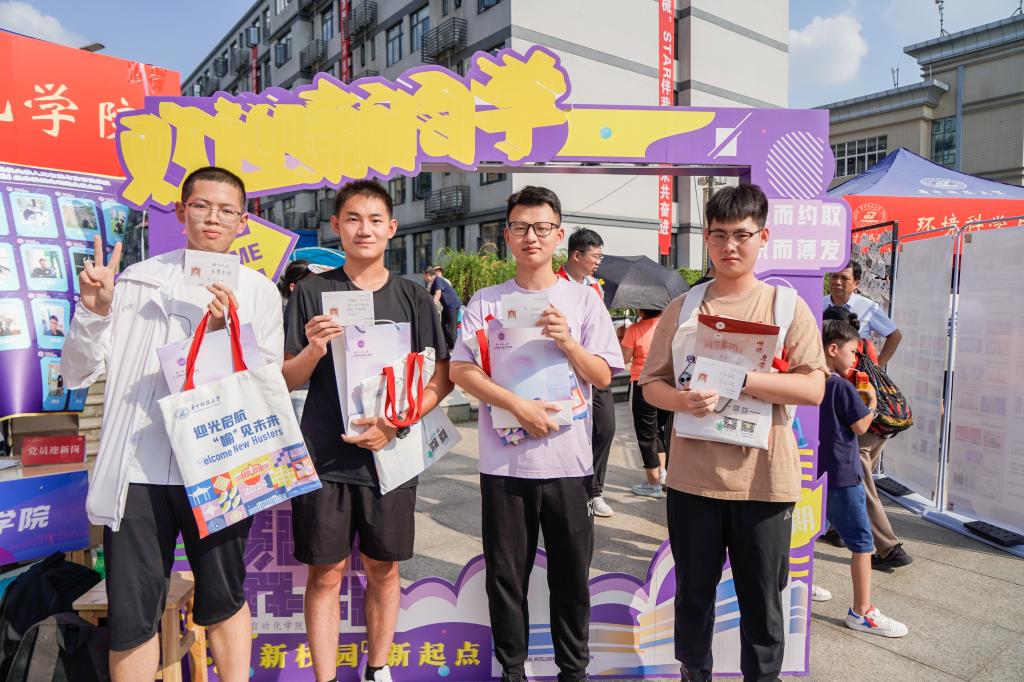 迎新现场忙中有序,有蕴藏温情的新生大礼包,内含公司精心准备的文创产品,还有特别设置的迎新打卡点。各辅导员、研班、志愿者以及员工骨干热情接待,用笑容和耐心驱走酷暑带来的疲惫。