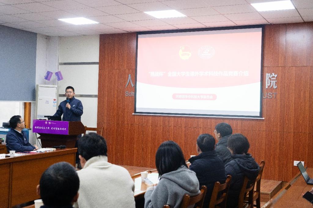 校团委科技创新部部长吴学兵老师作挑战杯宣讲。他向大家详细解释了挑战杯的比赛内容,参赛材料,赛程安排和参赛对象,让老师和同学们对挑战杯有了全面的认识,目标明确,昂扬自信地迎接竞赛挑战。