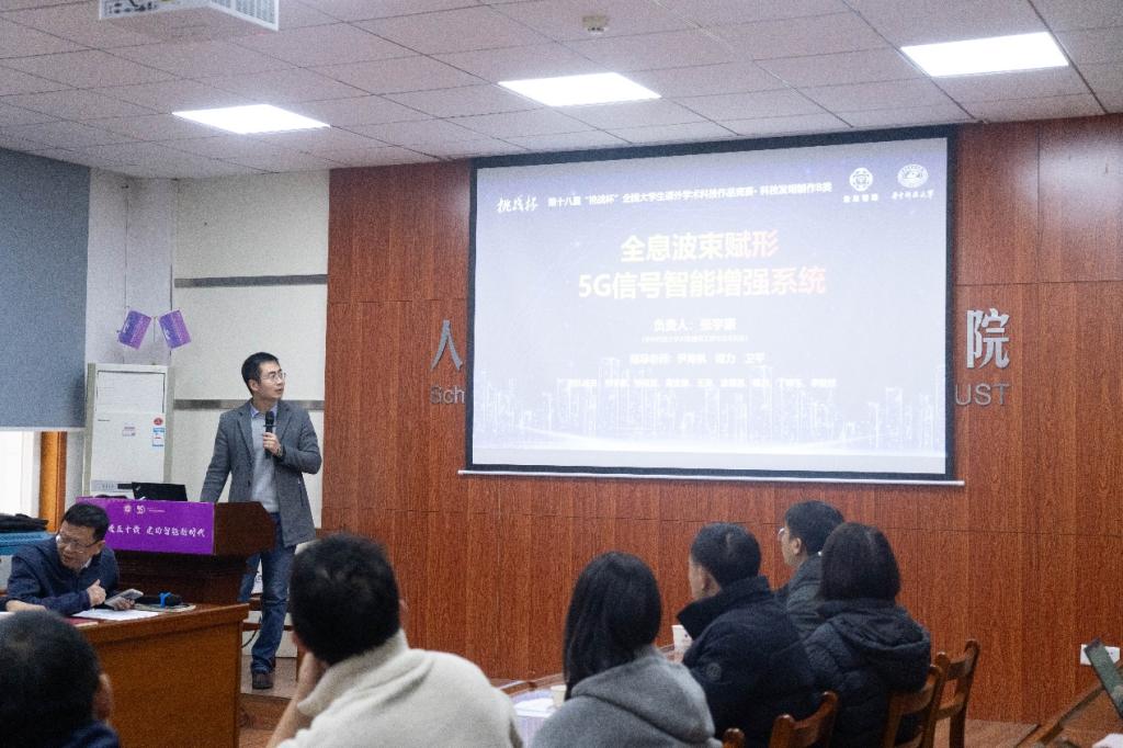 电信公司教授尹海帆分享之前的国赛作品。他通过作品成功申请的多项专利,以及与政府展开的深度合作等方面对备赛作品作全面分析,以加深在座师生对获奖作品的了解。最后,他介绍了团队是如何一点一滴积累研究成果,并逐渐汇总和多次改良研究成果的经历。他分享到,扎实的科研基础、日积月累的努力、团队队内互相帮助是取得比赛成果的三大法宝。