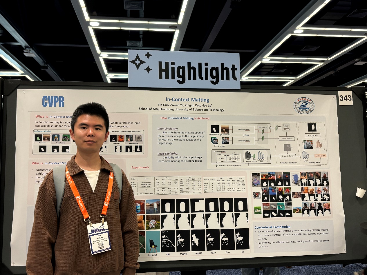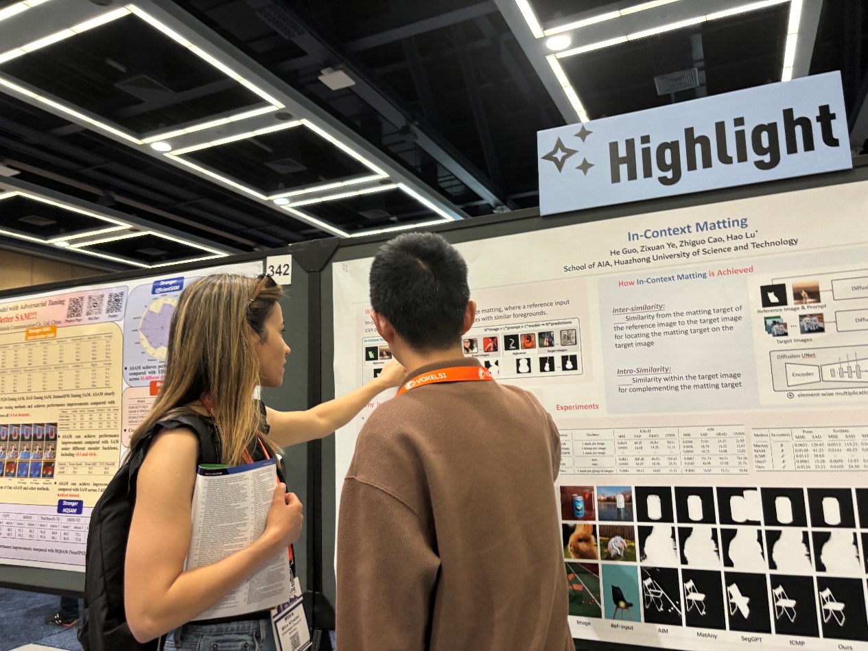 学术成就:“In-Context Matting”在CVPR 2024以亮点论文的形式进行了海报展示。此外,团队另一篇论文“Unifying Automatic and Interactive Matting with Pretrained ViTs”也在大会上进行了展示。两篇论文均聚焦于图像抠图领域,展现了团队在这一前沿领域的研究实力。