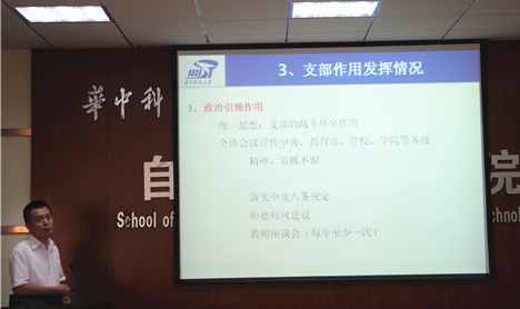 随后系统科学与工程系党支部书记刘振元老师汇报介绍了系统系党支部基层党组织建设情况,分别从党员基本情况、支部组织生活落实情况、支部作用发挥情况、党费收缴情况、党组织关系集中排查工作、经费场所保障、进一步加强教师党支部建设的意见建议七个方面进行了详细的介绍。系统系党支部紧密围绕中心工作设置支部工作方案,对公司的人才培养、团队建设以及科学研究等多方面做出了贡献。同时,系统系党支部除了积极参加公司的党章知识竞赛、学“习近平总书记讲话”演讲比赛、焦裕禄干部公司学习等活动,还开展了党群一对一结对联系、创办物流专业电子期刊《物华流芳》等一系列结合学科特点和具有示范作用的特色工作。