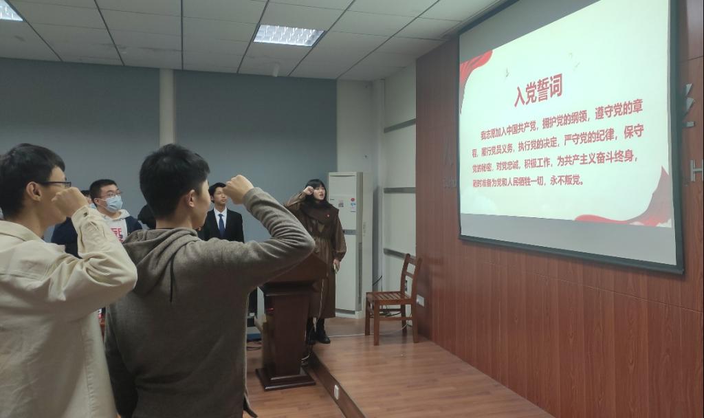 活动最后,硕士2101党支部书记张诗曼带领全体党员重温入党誓词,牢记初心使命,坚定共产党人的初心和使命。