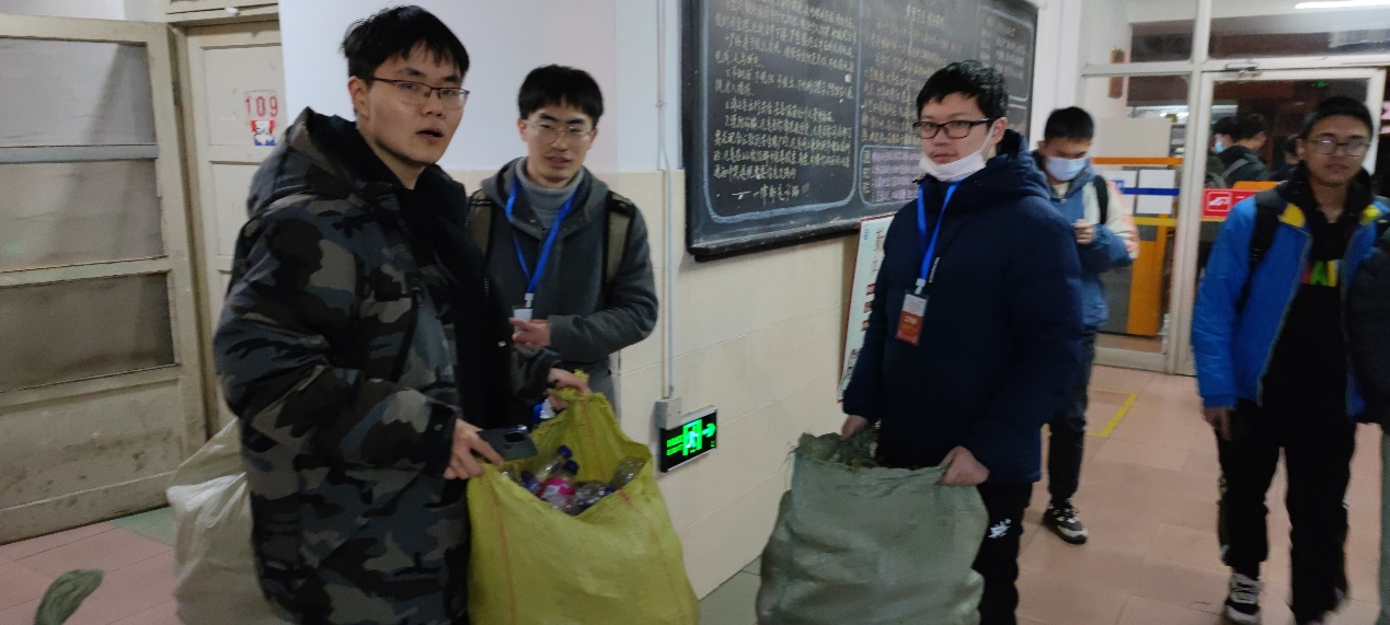 大家对此次的活动热情高涨,晚上九点半准时到达爱因斯坦广场,领取工作证和装瓶子的麻袋,分别前往自己负责的楼层,一间一间敲门询问,耐心向同学们说明来意。几十分钟之后,大家拖着装满瓶子的麻袋回到爱广,众人拾柴火焰高,这次活动共筹集了60元善款全部存入中国扶贫基金会。