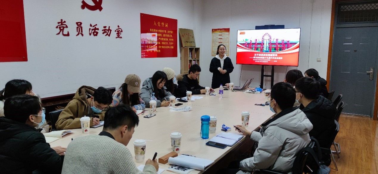 支部首先邀请校红色理论学讲团讲师杨傲寒同志开展《三个历史决议跨越百年——学习贯彻党的十九届六中全会精神》的主题党课,深刻剖析了党的历史上的三个重要决议所处的历史时期及在我党各个发展阶段中的重要意义,同时也分析了十九届六中全会的重要内涵,号召每个党员坚持做到“请党放心,强国有我”。支部每个党员都认真学习并做好笔记,就学习内容进行了深入的交流,收获颇多。