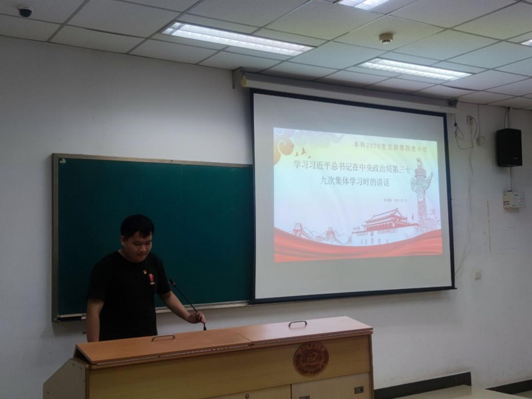 6月21日晚,本科2020级党支部第四和第六党小组在东九楼D310教室联合开展了本月主题党日活动。院团委书记、本科2020级辅导员陈璞贇受邀讲授微党课,组织委员陈思宇主持会议。