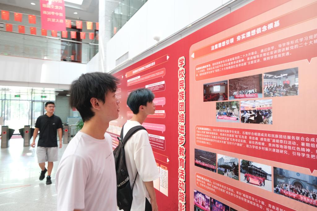 在李丹琦辅导员的精彩讲解后,各位同学进行自由探索。在参观的过程中,同学们学习新时代党的民族工作的基本要求,掌握铸牢中华民族共同体意识的关键词解,领悟四对关系的重要意义。同时同学们看到公司在民族团结进步教育方面开展了思想引领,学风建设,就业指导等方方面面的工作,真切落实加强民族团结进步工作的进程。这些工作也激励同学们投身于加强民族团结的建设中,认识到铸牢中华民族共同体意识,是国家统一之基,民族团结之魂。