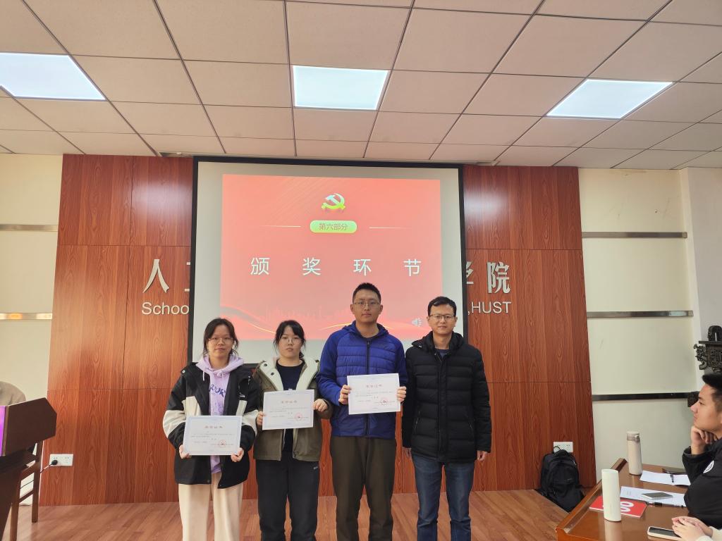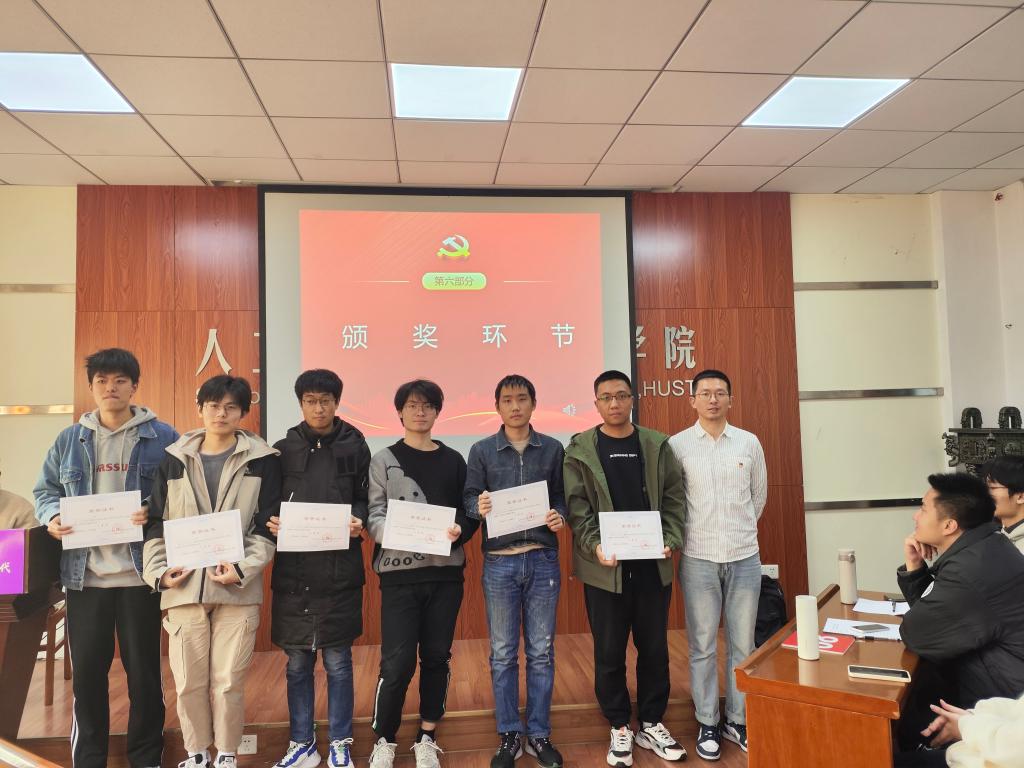 经过两轮精彩的角逐,2023级硕士生八班党支部队伍获得比赛一等奖,2023级硕士生三班党支部队伍、2023级硕士生十班党支部队伍获得二等奖,2023级硕士生五班党支部队伍、2023级硕士生二班党支部队伍、2023级博士生二班党支部队伍获得三等奖。曹攀辉、王泽楠和刘典辉分别为获奖队伍颁发了荣誉证书。
