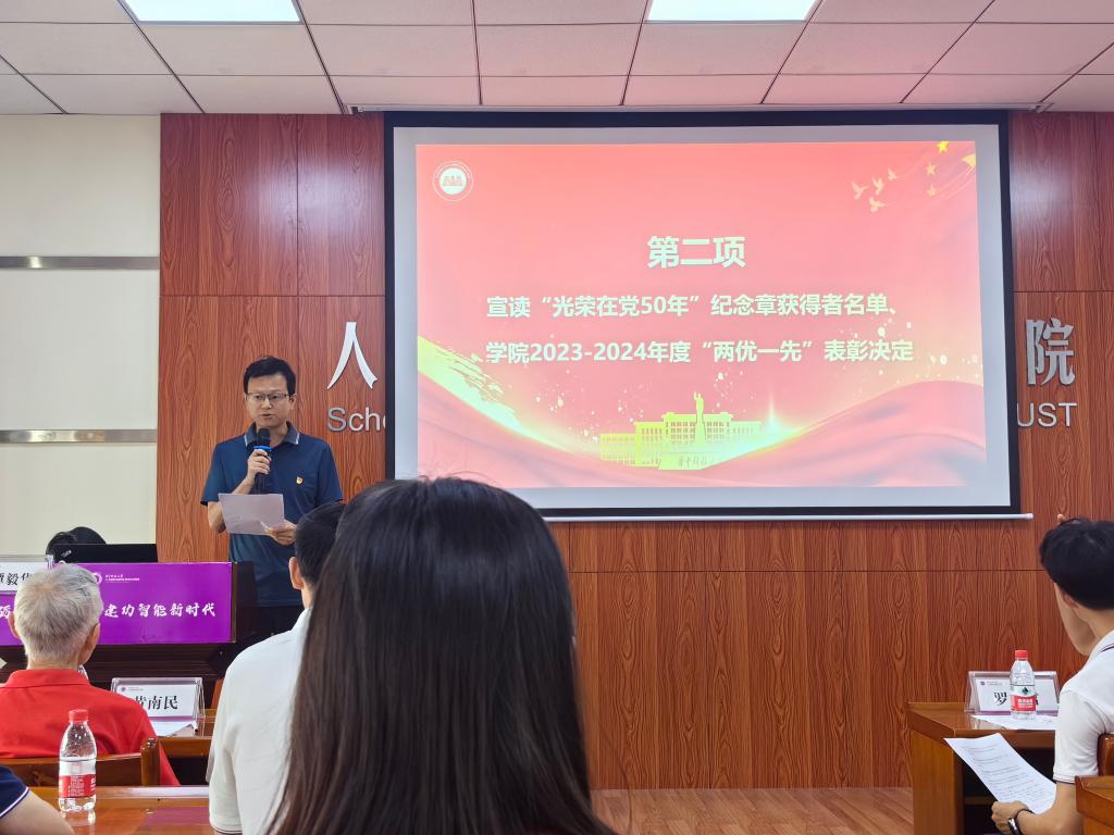 大会在庄重的国歌声中正式开始。公司党委副书记曹攀辉宣读公司“光荣在党50年”纪念章获得者名单和公司2023-2024年度优秀共产党员、优秀党务工作者和先进基层党组织表彰决定。
