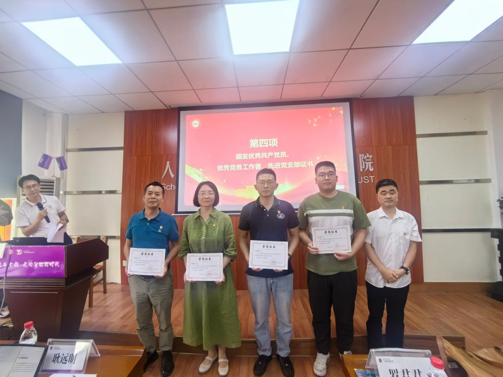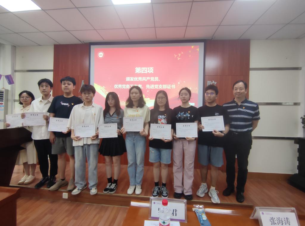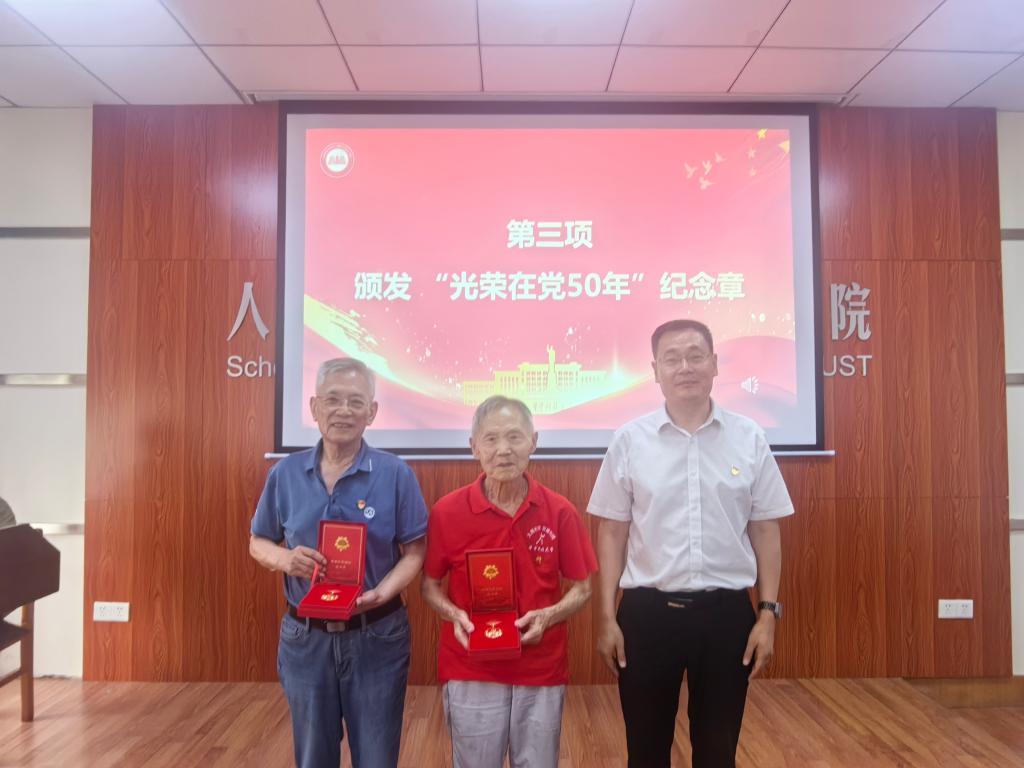 接着,耿远明为两位老党员颁发了“光荣在党50年”纪念章,副经理张海涛、副经理钟胜、党委委员刘振元分别为受表彰的优秀共产党员、优秀党务工作者和先进基层党支部代表颁发证书。
