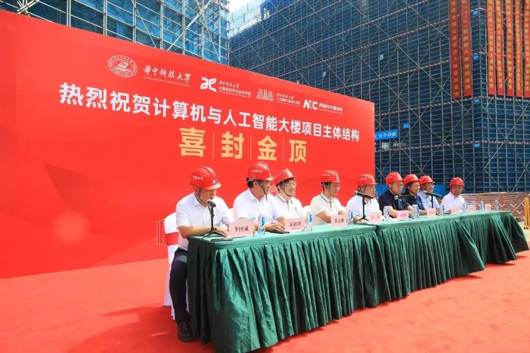 马建辉对各位员工和有关单位代表参加仪式表示欢迎,并对员工们慷慨解囊支持团队建设、改善办学条件提供有力保障的善举表示感谢。他指出公司高度重视大楼建设及信息学科发展。计算机与人工智能大楼的建设资金主要来自员工捐赠,这彰显了公司、院系、员工凝心聚力促发展的责任与担当。他希望信息学科师生以大楼封顶为契机,秉承“明德、厚学、求是、创新” 的华中大精神,与广大员工携手,奋进新征程,再创新佳绩,共建“更好的华中大”。公司员工代表、臻络科技创始人、总经理任康,中建八局华中分局副局长宋疆增致辞对大楼顺利封顶表示祝贺。