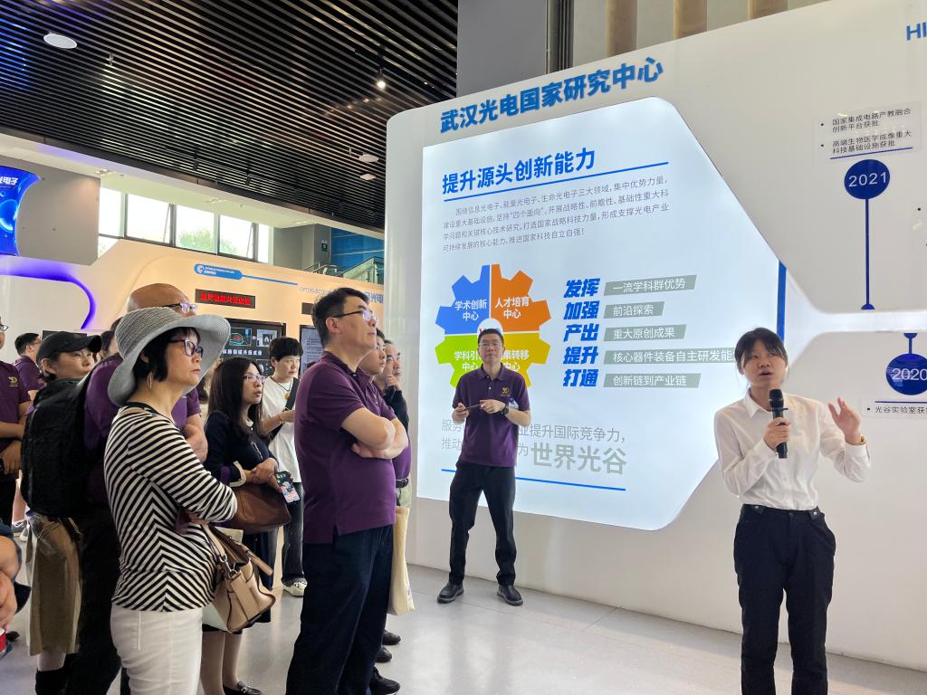 在武汉光电国家研究中心,现场讲解员向大家介绍了中心基本情况、发展规划和近期进展,以及光谷实验室建设情况,同时引导员工们参观了研究中心聚焦信息光电子、能量光电子、生命光电子三大领域的最新科研成果和应用。“多学科的交叉与融合,是创新的源泉,也是华科的优势!”在强磁场科学中心,工作人员用深入浅出的语言为大家介绍了强磁场装置的运行机理和对许多科研成果的巨大贡献。员工们也深深感受到,这一项项创新成果,正是华科大“双一流”建设进程中,加强优势团队建设的一个缩影。
